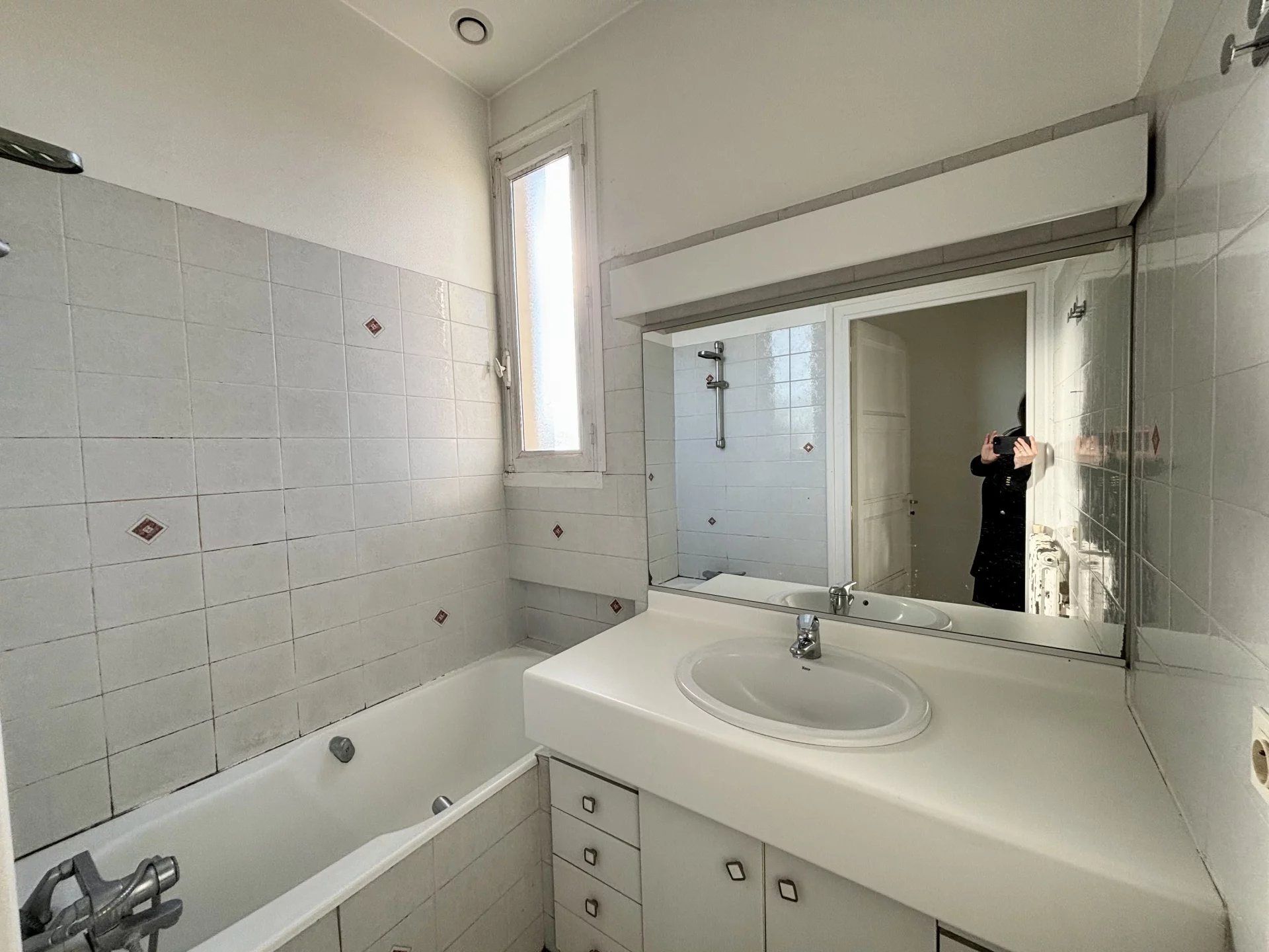 Une entrée avec placard de rangements desservant un WC, une salle de bains de plus de 3m² avec baignoire et fenêtre. Une cuisine indépendante d’environ 10m² aménagée, une chambre de 11m² avec son placard de rangement, et enfin son séjour de plus de 16m² baigné de lumière avec sa double exposition Nord-Ouest et son accès au balcon.