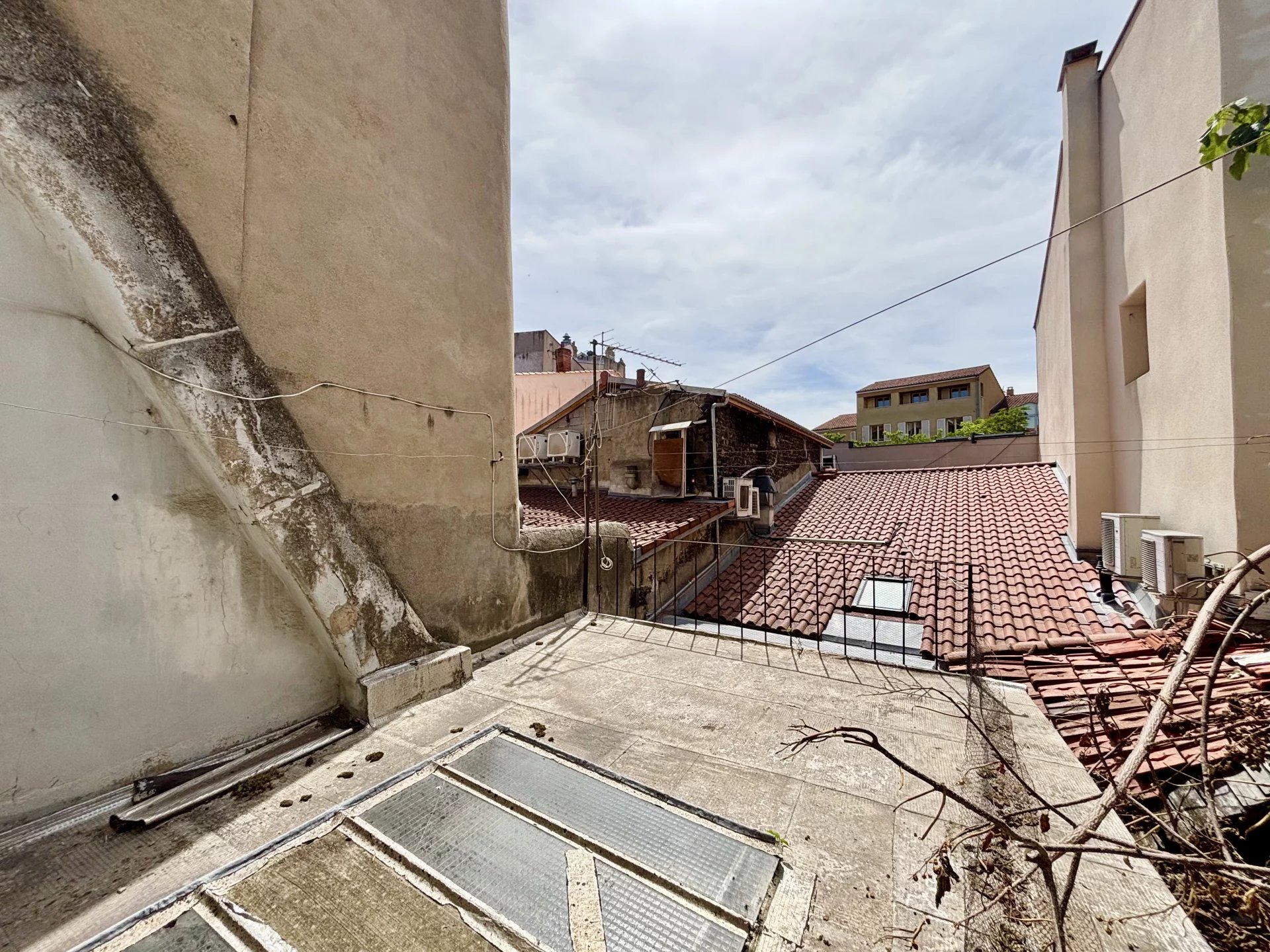 Dressée sur 5 niveaux : un sous-sol avec des caves voûtées, un rez-de-chaussée, puis 3 étages dont le 1er possédant une grande terrasse d'environ 25m² sans vis à vis sur les toits de Clermont-Ferrand !