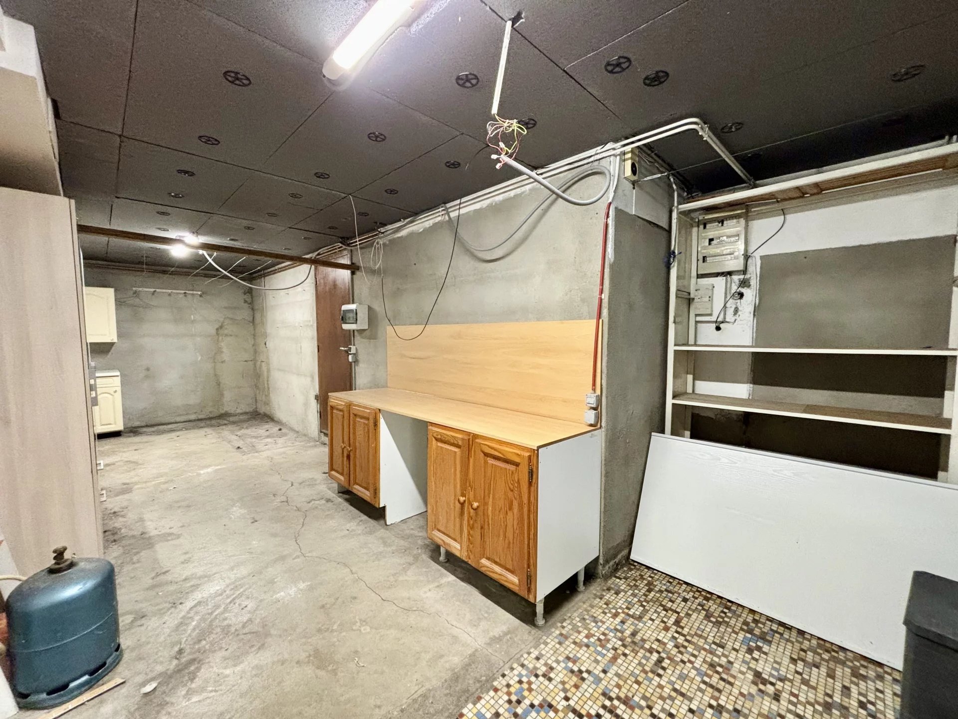 Au sous-sol (semi-enterré), vous découvrirez un premier garage avec porte sectionnelle automatisée, suivi d'une partie buanderie, cellier et cave totalisant quasiment 70m². Mais aussi, une pièce dont on accède par un escalier du salon ou bien par l'extérieur pour une surface de 24.77m² pouvant faire office d'atelier, de bureau ou encore de cabinet pour une profession libérale grâce à sa lumière naturelle et sa grande baie vitrée.