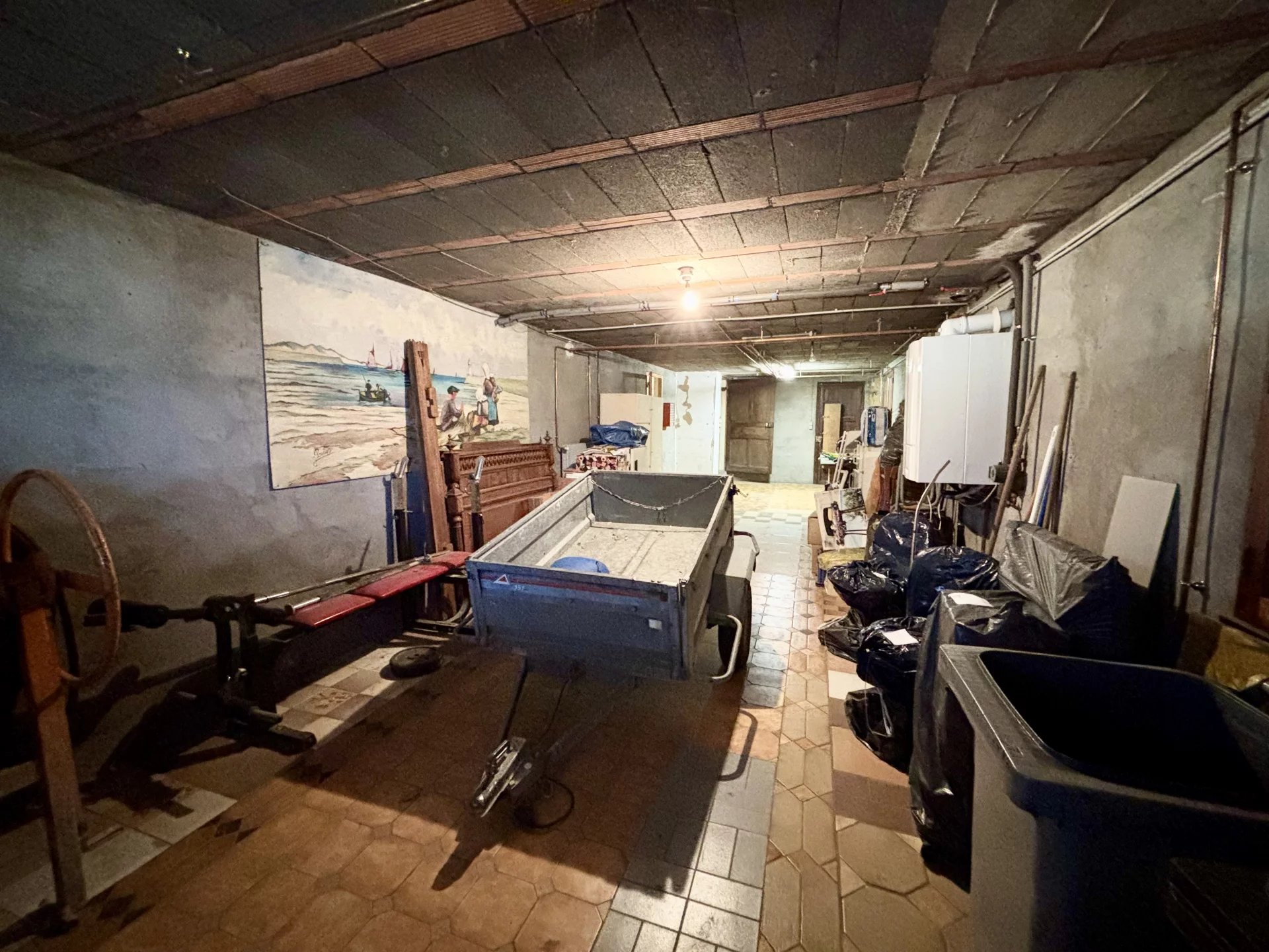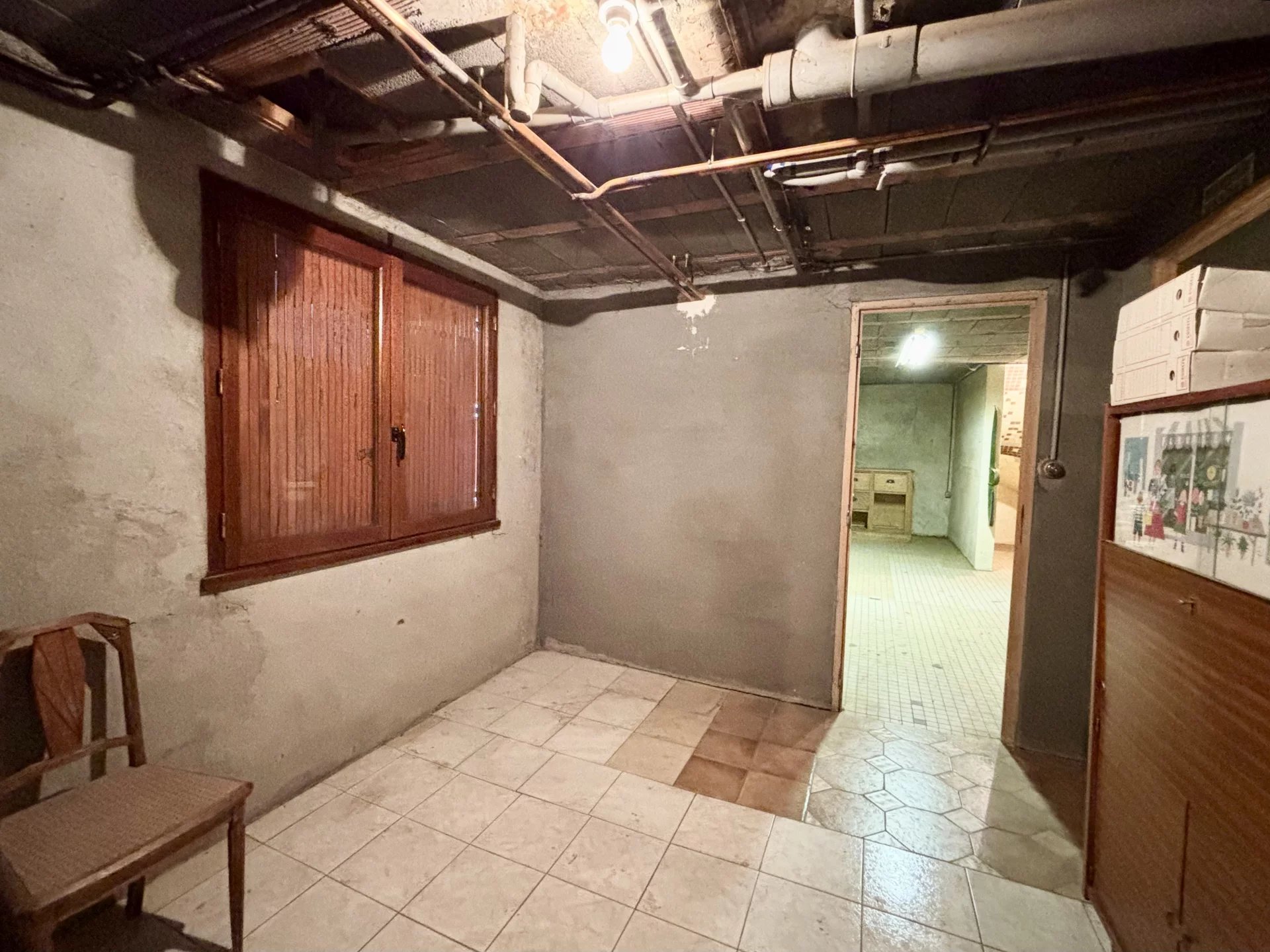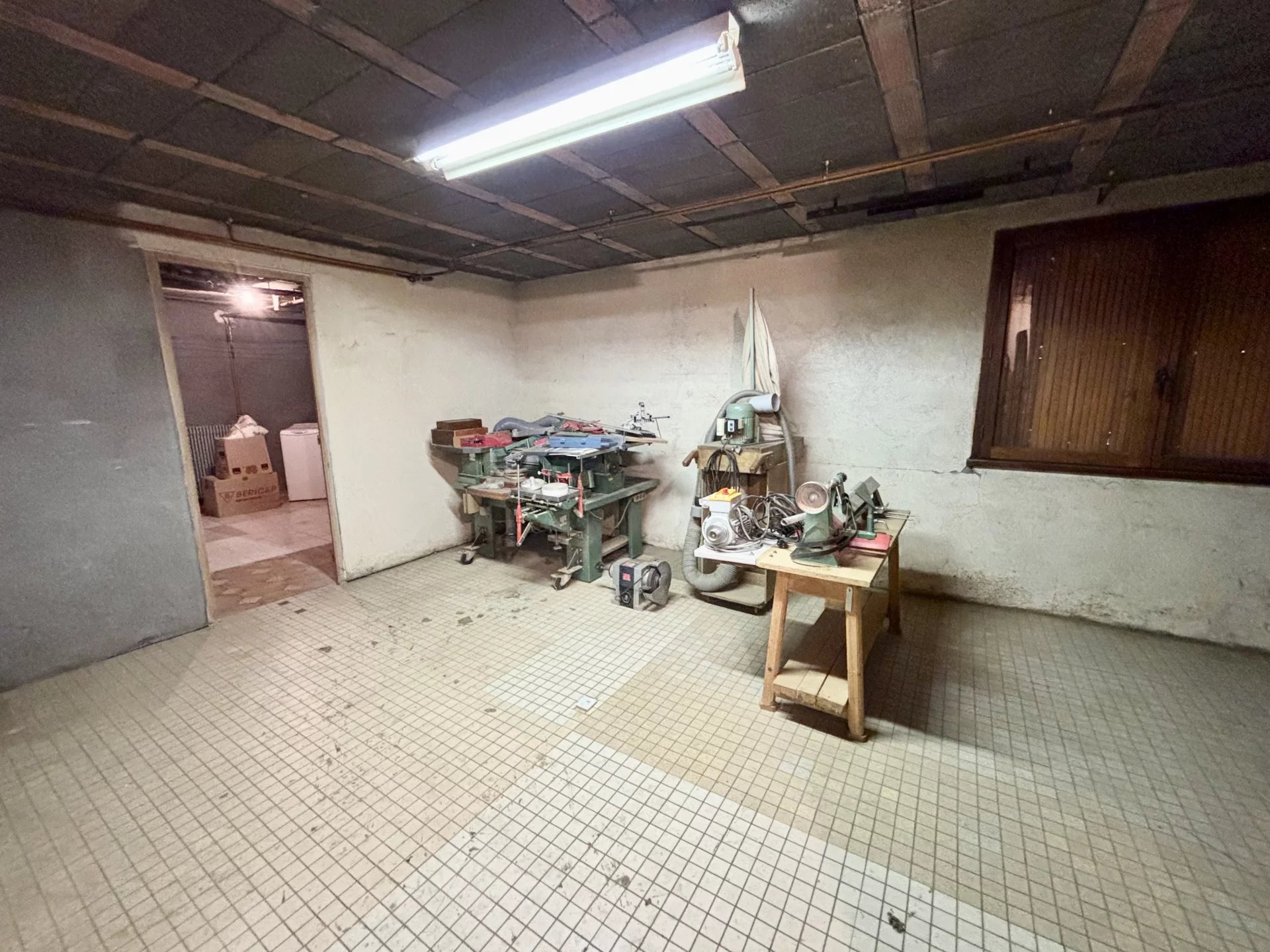Au rez-de-chaussée, un sous-sol complet de 93.3m² desservant un grand garage de 44.3m², une première pièce (anciennement atelier) de 26m², une seconde de 10m² mais aussi une salle d'eau avec wc et un cellier ayant accès à une cave en R-1.