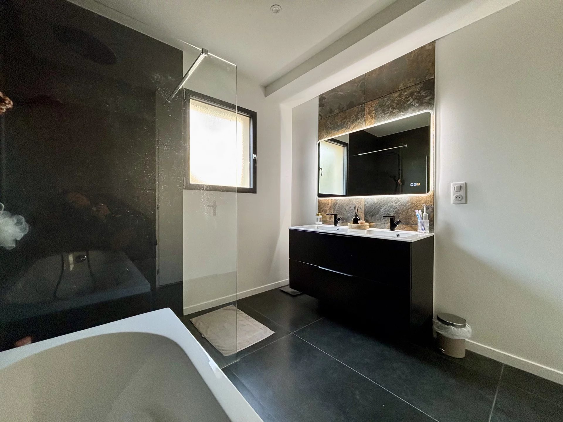 Une salle de bains principale de plus de 7m² avec douche à l'italienne et baignoire, un WC et une buanderie de près de 6m² viennent terminer les prestations de ce niveau.
