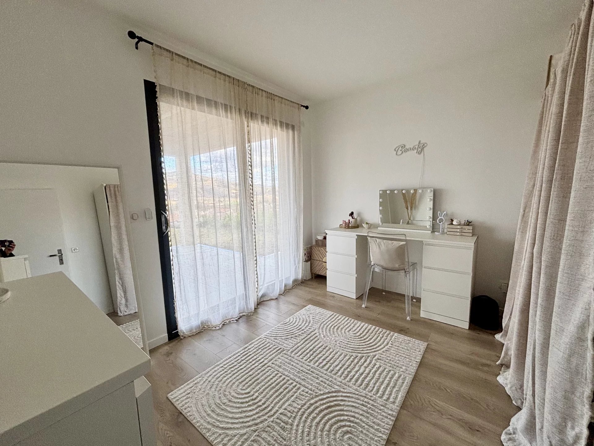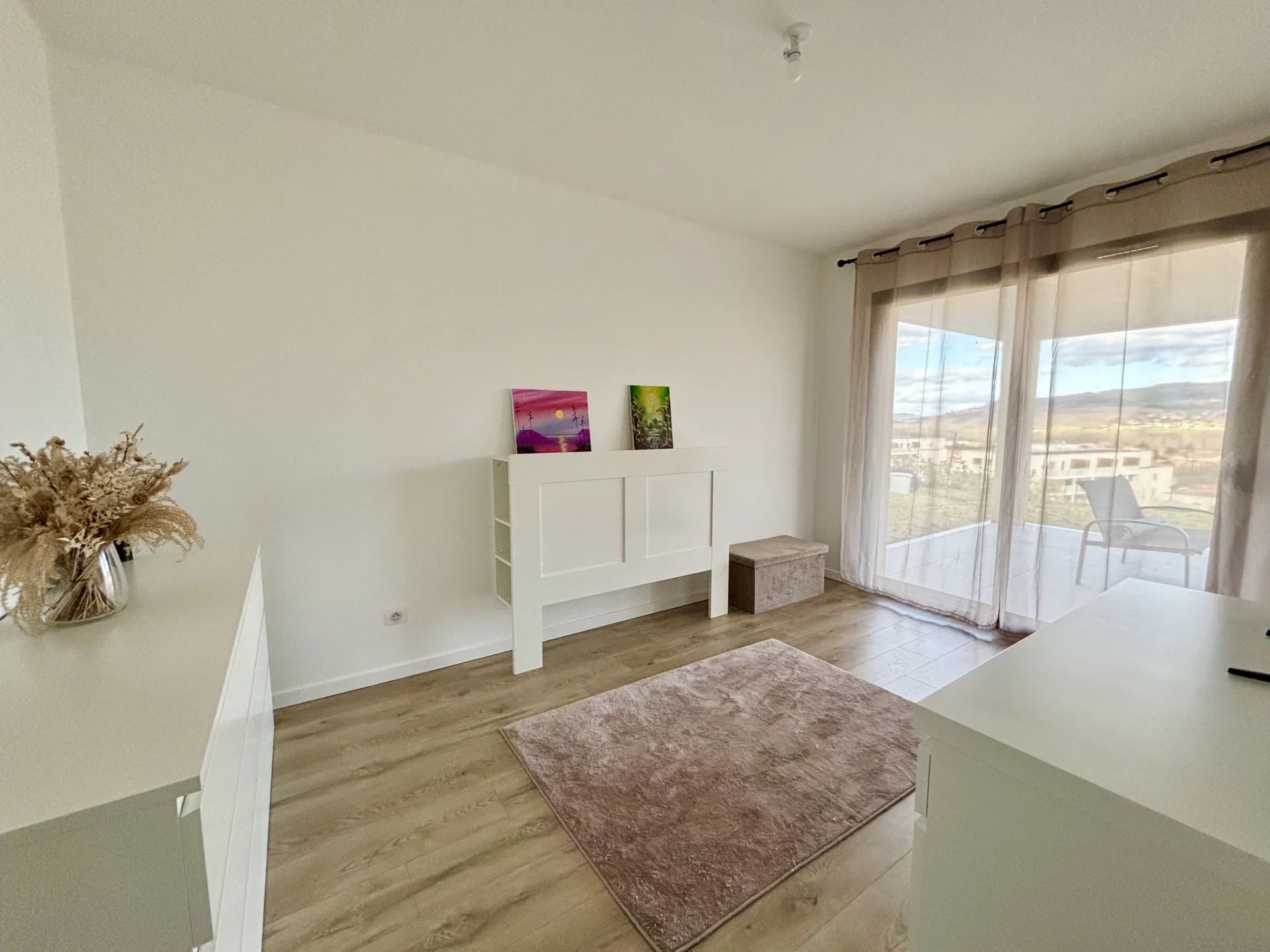 Un accès à une seconde terrasse de 30m² et le jardin est possible depuis les trois chambres à l'Est.